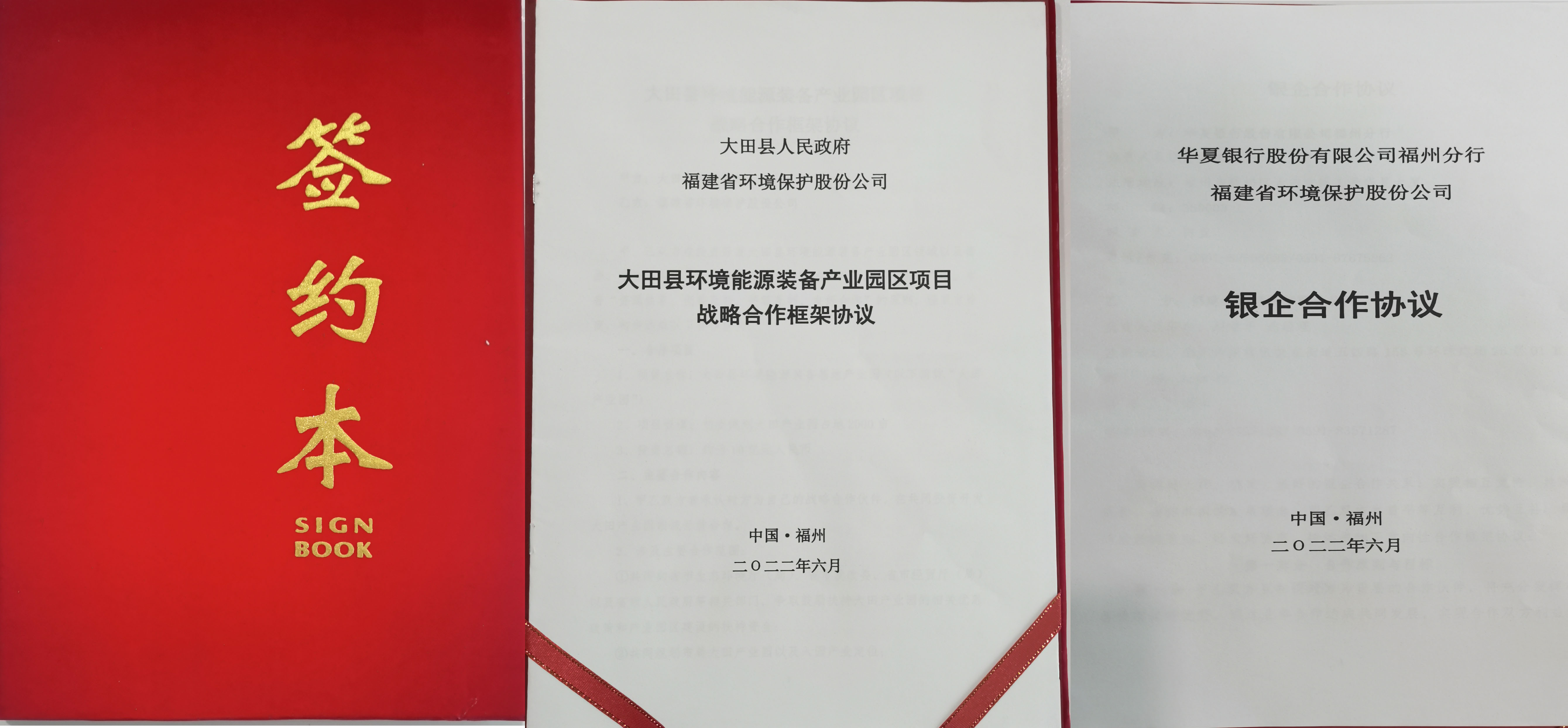 2022年6月19日上午,在福州市海峽國(guó)際會(huì)展中心福建省生態(tài)環(huán)境項(xiàng)目成果發(fā)布會(huì)現(xiàn)場(chǎng),福建省環(huán)境保護(hù)股份公司分別與大田縣人民政府、華夏銀行股份有限公司福州分行簽署了戰(zhàn)略合作協(xié)議。
