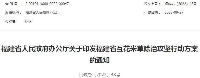 《福建省互花米草除治攻堅(jiān)行動(dòng)方案》已經(jīng)省政府同意,現(xiàn)印發(fā)給你們,請(qǐng)結(jié)合實(shí)際,抓好組織實(shí)施。