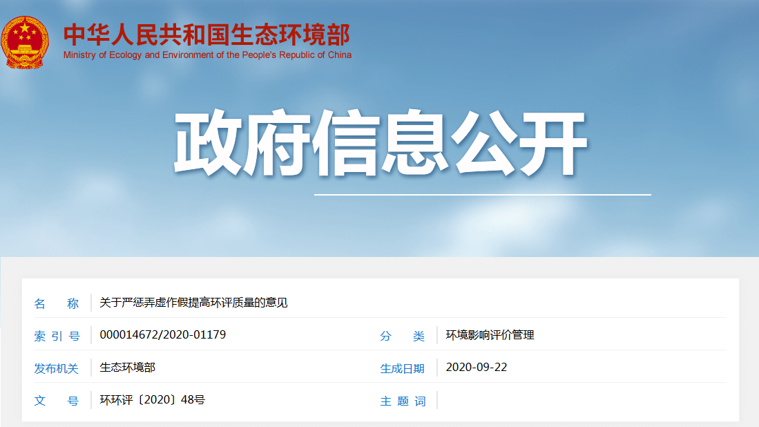 生態(tài)環(huán)境部關(guān)于嚴懲弄虛作假提高環(huán)評質(zhì)量的意見
