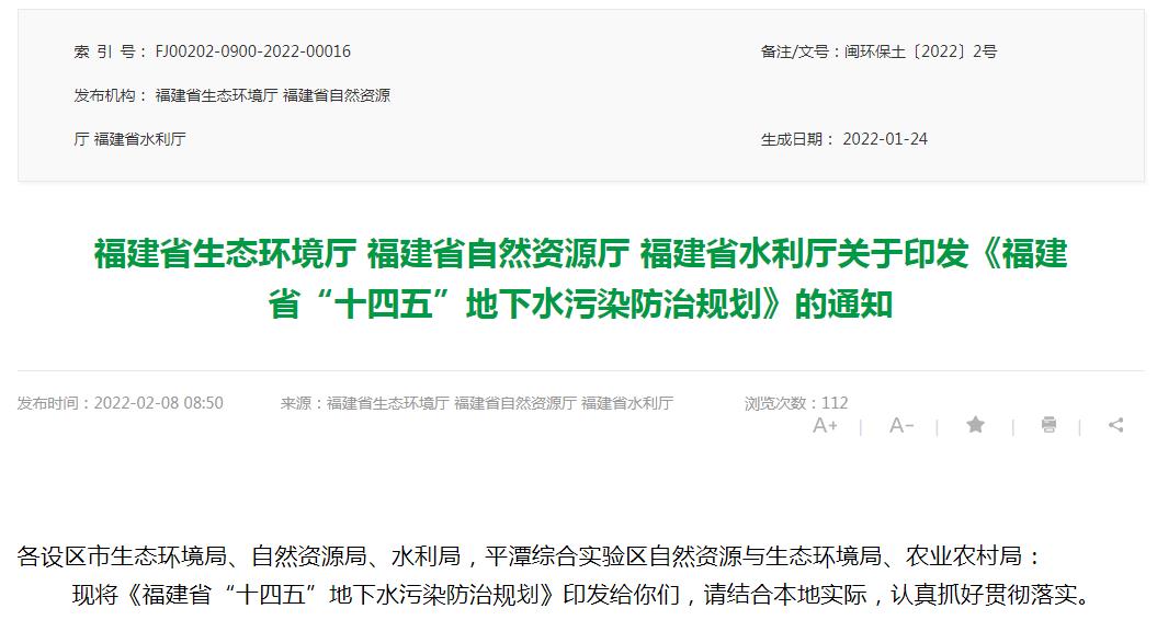 福建省“十四五”地下水污染防治規(guī)劃