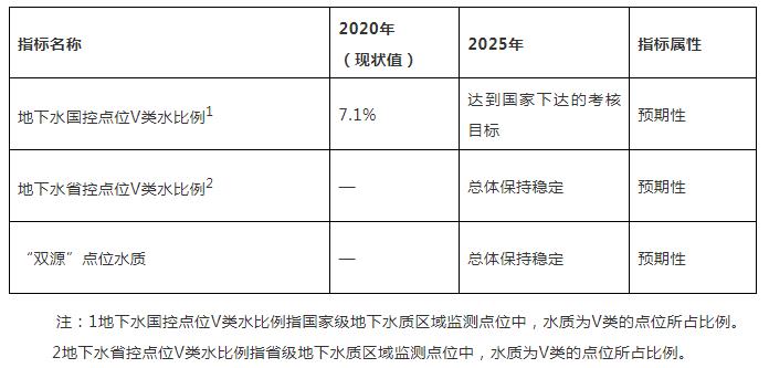 到2025年,全省地下水環(huán)境質(zhì)量總體保持穩(wěn)定(表1)。到2035年,全省地下水環(huán)境質(zhì)量總體改善。